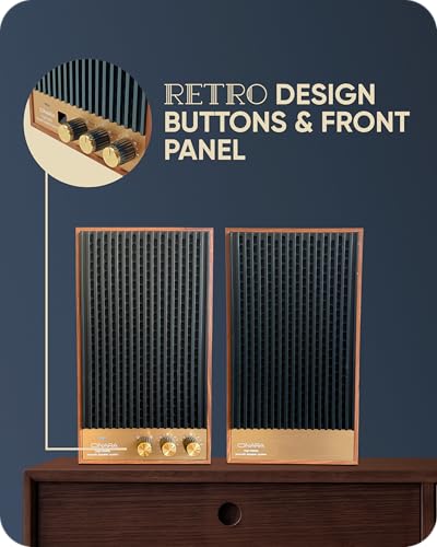 - ▪️AUTHENTIC 80s RETRO DESIGN – Premium wooden cabinet with vintage-inspired front panel and tactile control buttons. The solid wood enclosure minimizes resonance and produces warm, natural acoustics that outperform typical plastic speaker housings. Ideal for desktop setups, living rooms, or TV audio