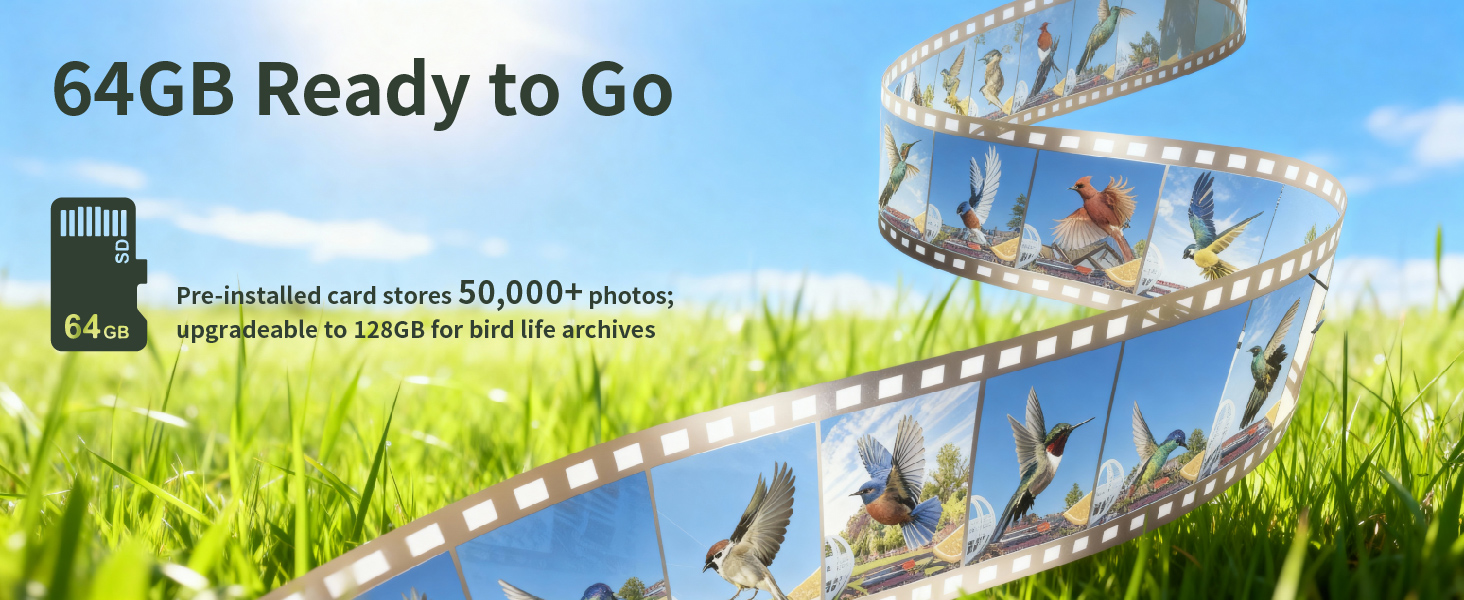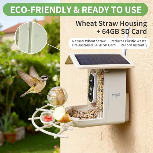 Eco-Conscious Design Ready to Use: Start recording wildlife instantly with a pre-installed 64GB SD card while our wheat straw housing reduces plastic waste, letting you enjoy nature responsibly