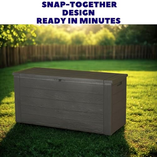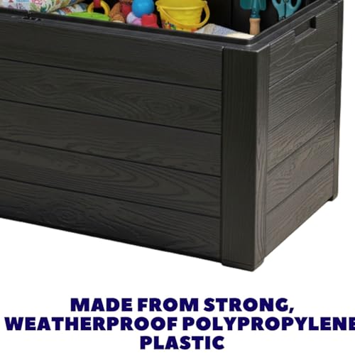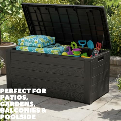 - LARGE 300L CAPACITY – Spacious storage chest measuring 120x45x57 cm, perfect for cushions, garden tools, toys, and patio essentials.