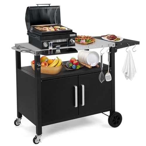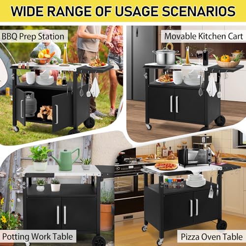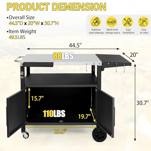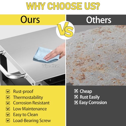 - 【Durable Stainless Steel Top】The premium stainless steel countertop provides a hygienic, rust-resistant and easy-to-clean surface, ideal for food preparation, plating and serving during BBQs. It withstands heat, moisture and outdoor conditions, making it perfect for garden grilling, outdoor kitchens and patio cooking setups.