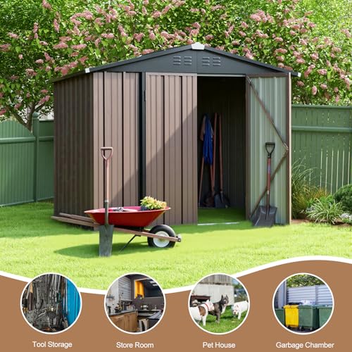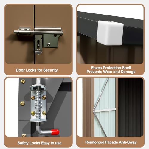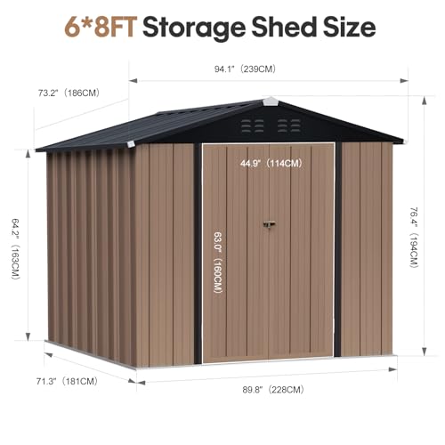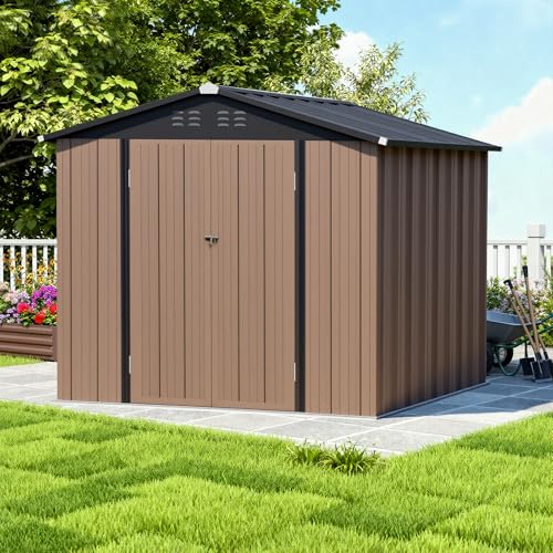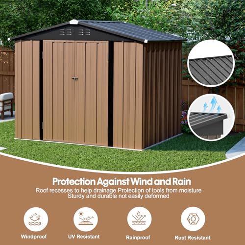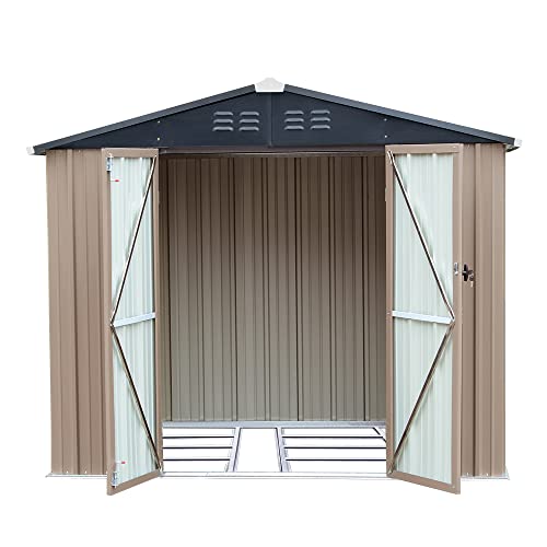Outdoor Metal Storage Shed, Galvanized Steel, Brown and Black, Steel Panel with Lockable Door and Air Vents (7.48×5.9 FT)