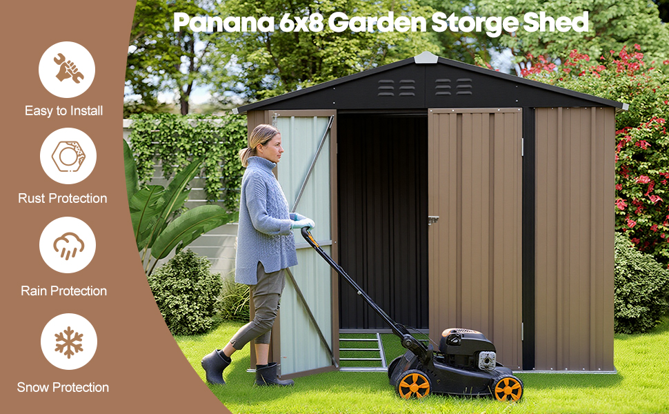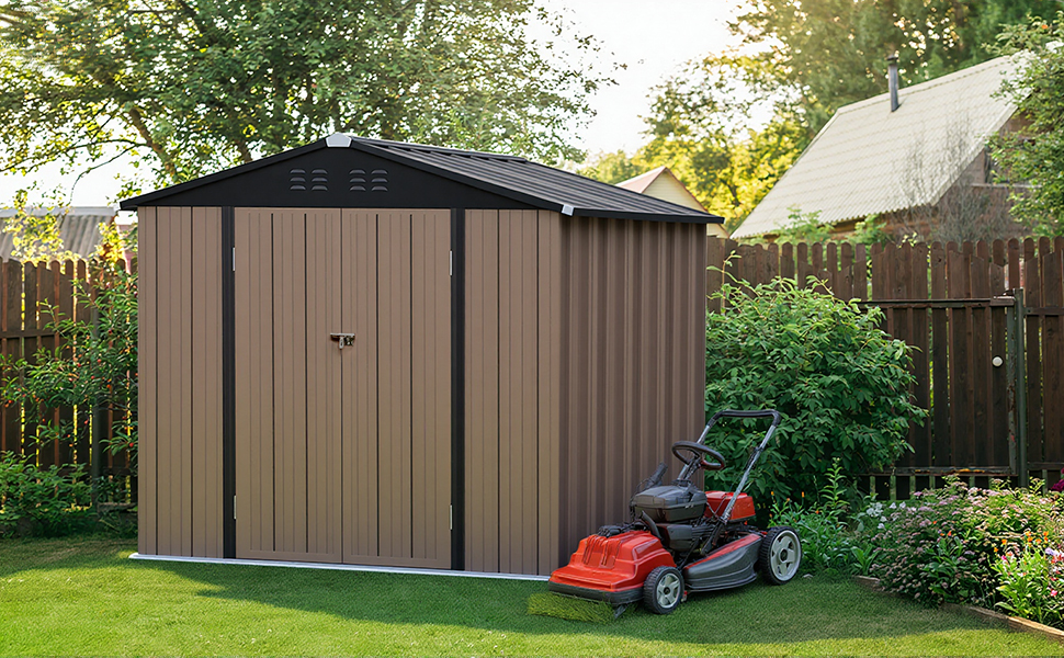 Outdoor Metal Storage Shed, Galvanized Steel, Brown