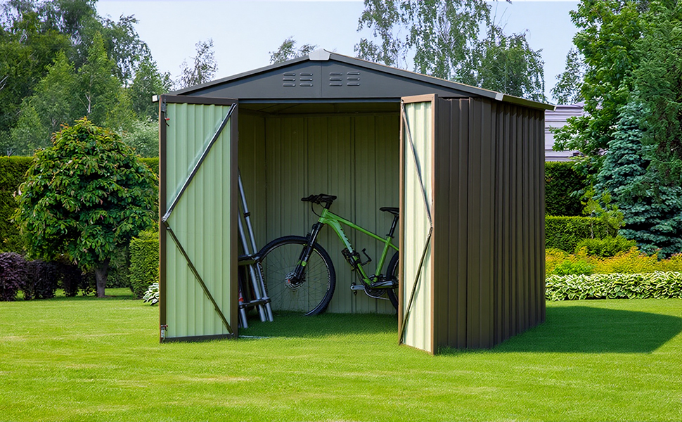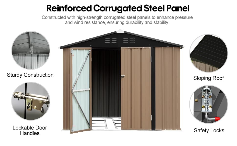The reinforced corrugated steel construction enhances pressure and wind resistance, ensuring exceptional durability and stability for years to come. this spacious shed offers ample storage capacity for bicycles, lawn mowers, sports equipment, and more.