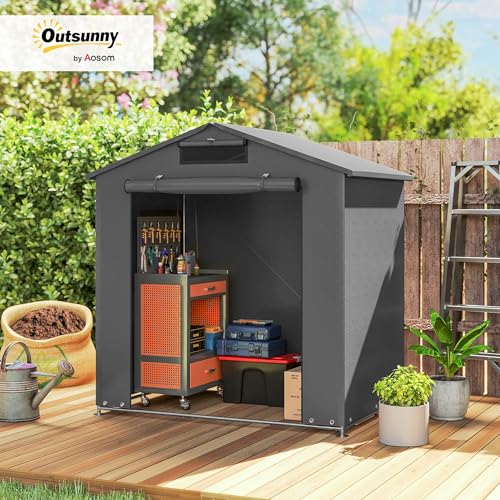 Outsunny 6 x 4 ft Outdoor Garden Storage Shed, Waterproof Bike Tent with Vent and Roll-Up Zipper Door,Outdoor Portable Shed Storage Shelter for Bikes, Dark Grey