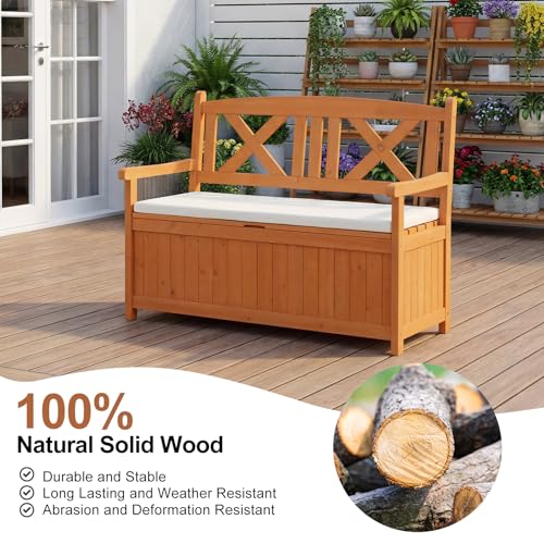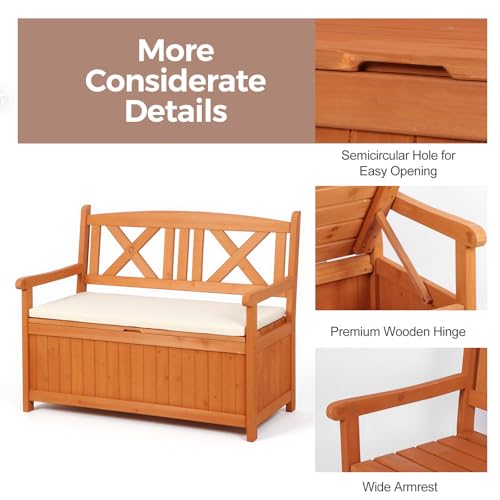 Panana 2-in-1 Wooden Garden Storage Bench, 2 Seater Patio Outdoor Bench with Cushion, Slatted Seat Loveseat Furniture for Porch, Balcony, Decking