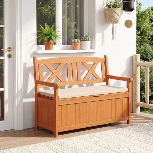 - Premium Durability: Crafted from durable Solid Wood, this garden storage bench boasts exceptional strength and Weather-Resistant properties. It’s built for Long-Lasting use, combining Low Maintenance with a Rustic Natural Aesthetic.