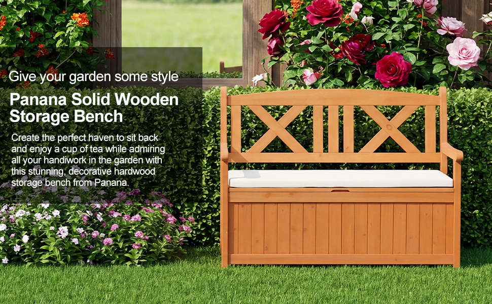 Panana 2-in-1 Wooden Garden Storage Bench, 2 Seater Patio