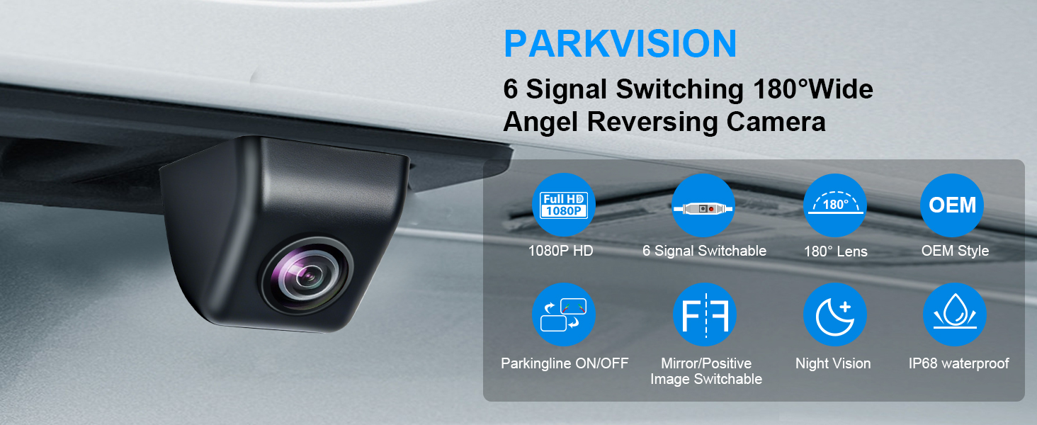 PARKVISION Reversing Camera for Car Durable Metal Housing 1080P Backup Rear View Camera, 180° Wide Angle OEM Style Universal Car Reversing Camera with 6 Switchable Systems