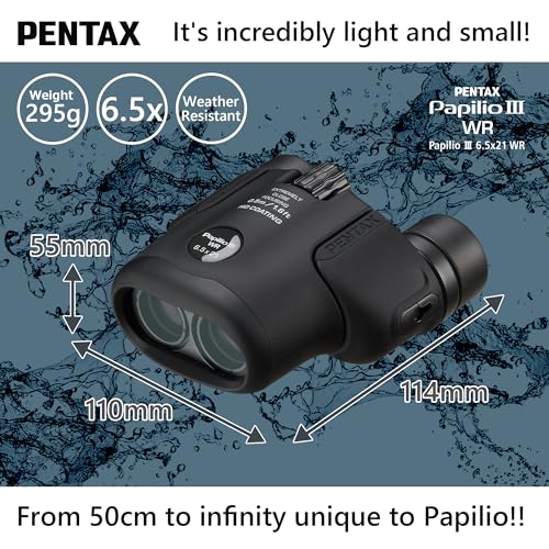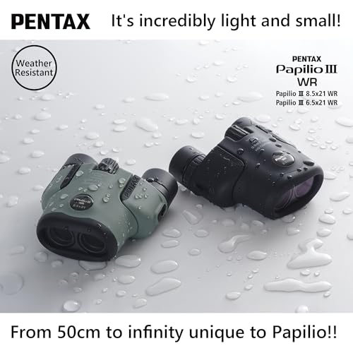 Pentax Papilio III Binoculars, 6.5 x 21 Weather Resistant, Black, Focus 50 cm, Splash Resistant, Museum, Outdoor, Nature, Live Sports, HD Processing