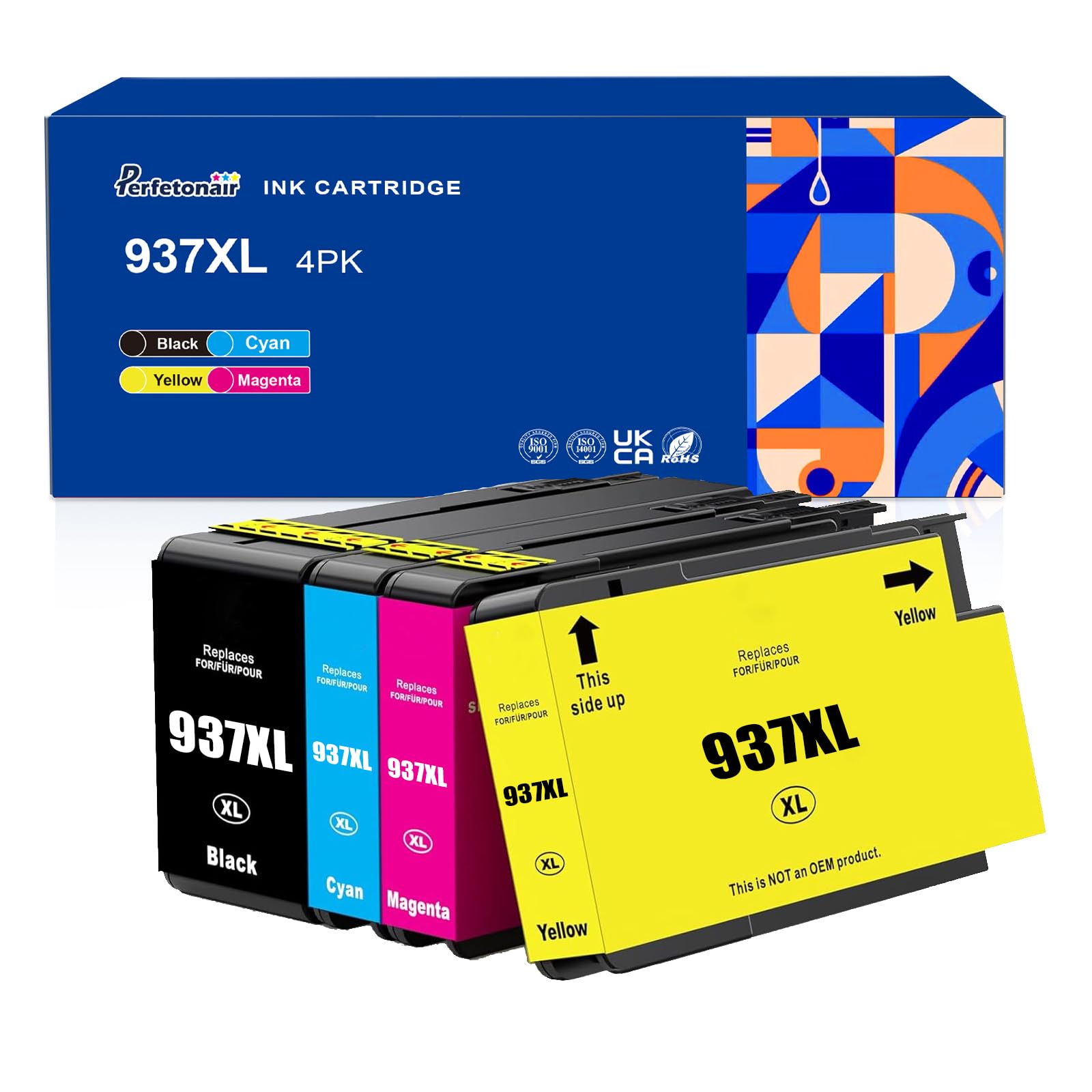 Package contents: compatible with HP 937XL ink cartridge Delivers crisp, precise print results includes 1 x Black 937XL, 1 x Cyan 937XL, 1 x Magenta 937XL, 1 x Yellow 937XL, 1 x User manual (4 cartridges in total)