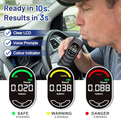 CLEAR DIGITAL COLOUR LCD DISPLAY – Digital breathalyser with a bright colour LCD screen for easy reading in daylight or low light; simple operation so you can get a result without complicated settings.