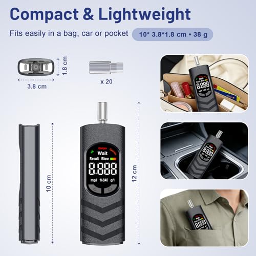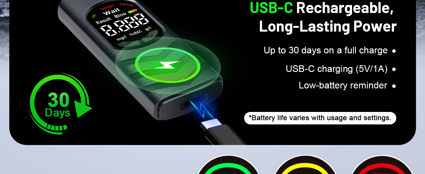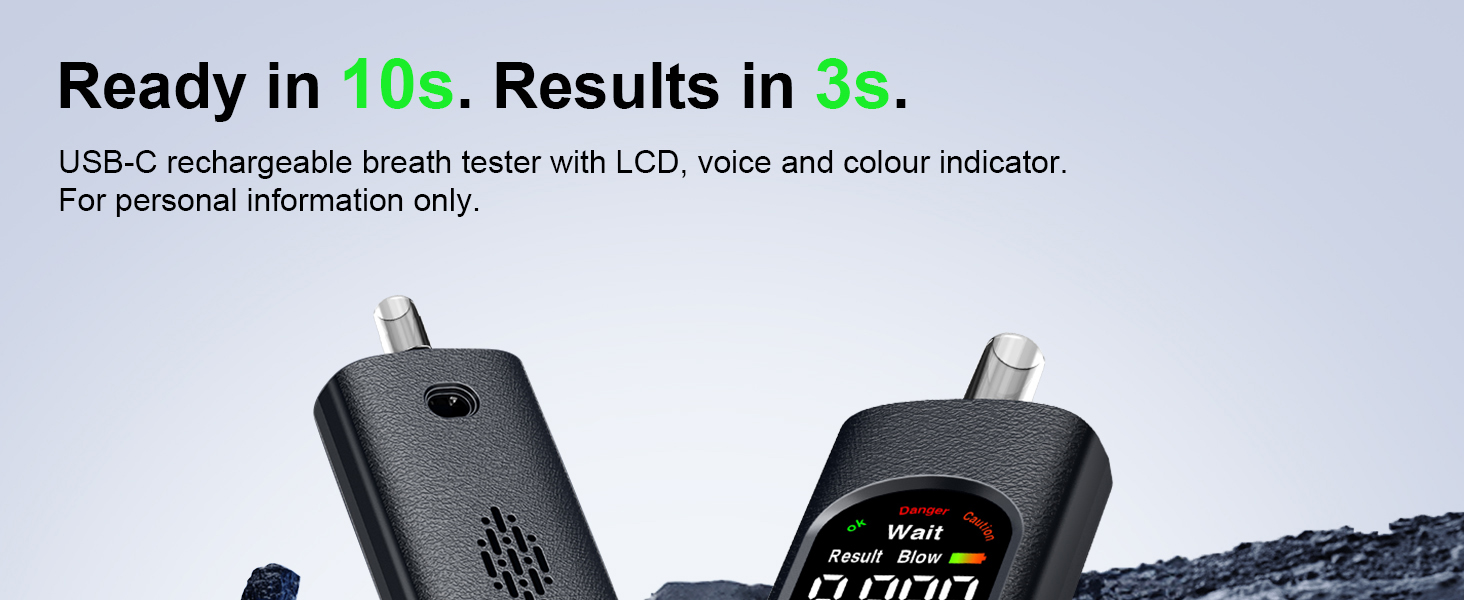 USB-C RECHARGEABLE, NO BATTERY HASSLE – This rechargeable alcohol tester charges via USB-C/Type-C, making it convenient for travel and regular use; portable design for use anywhere, anytime.