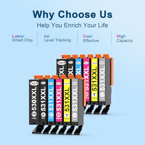 Ink Cartridge Model: Jagute PGI-530 CLI-531 XXL Compatible with Canon 530 531 ink cartridges combo pack, for PGI530 PGBK ink, for 531BK/531GY/531C/531M/531Y ink. Suitable for office and home use, greatly meeting printing needs (Not original)