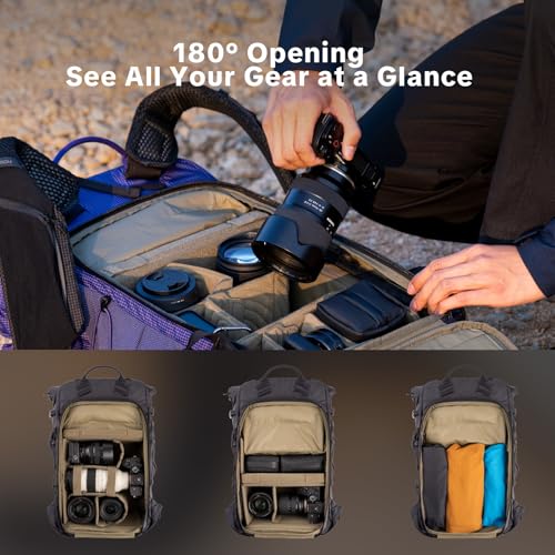 PGYTECH OnePro Ultralight Camera Backpack, Expandable Camera Bag for Photographers Outdoor Travel with Rain Cover, Dividers and 14-16″ Laptop Sleeve, Compatible with DSLR/Drones/Mirrorless