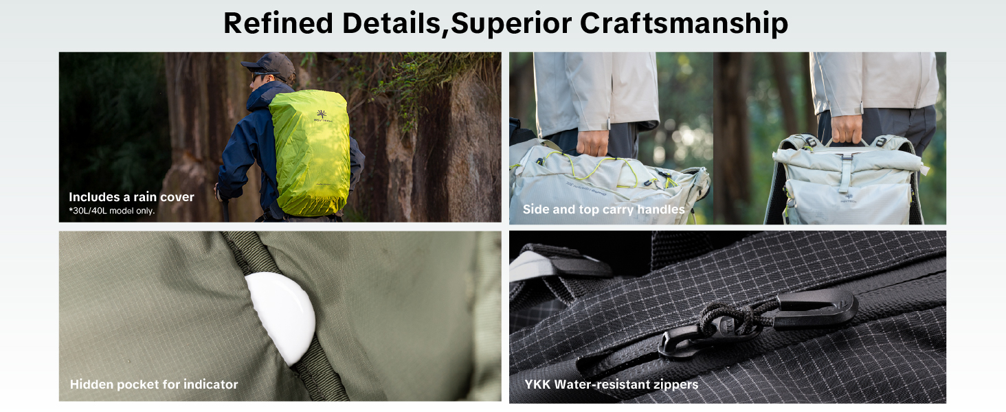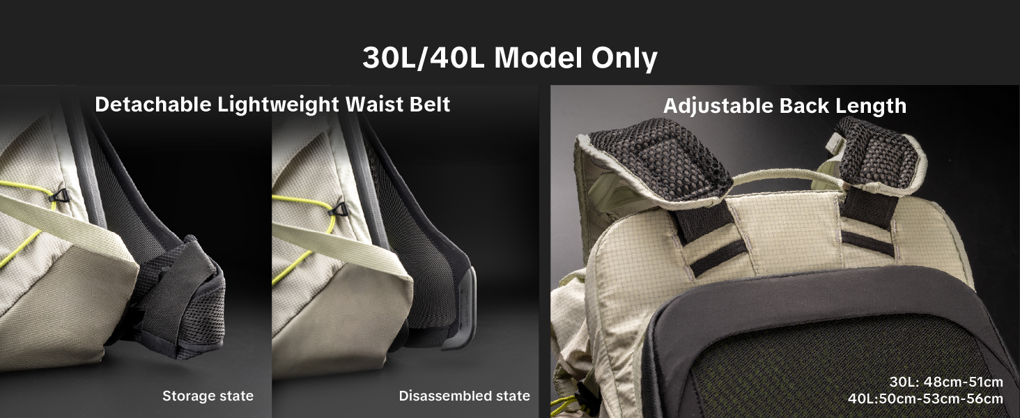 | with Accessories? | Waist belt+rain cover(30L/40L) | M or L Insert bag+rain cover | rain cover | Sling Bag+rain cover | rain cover | – |