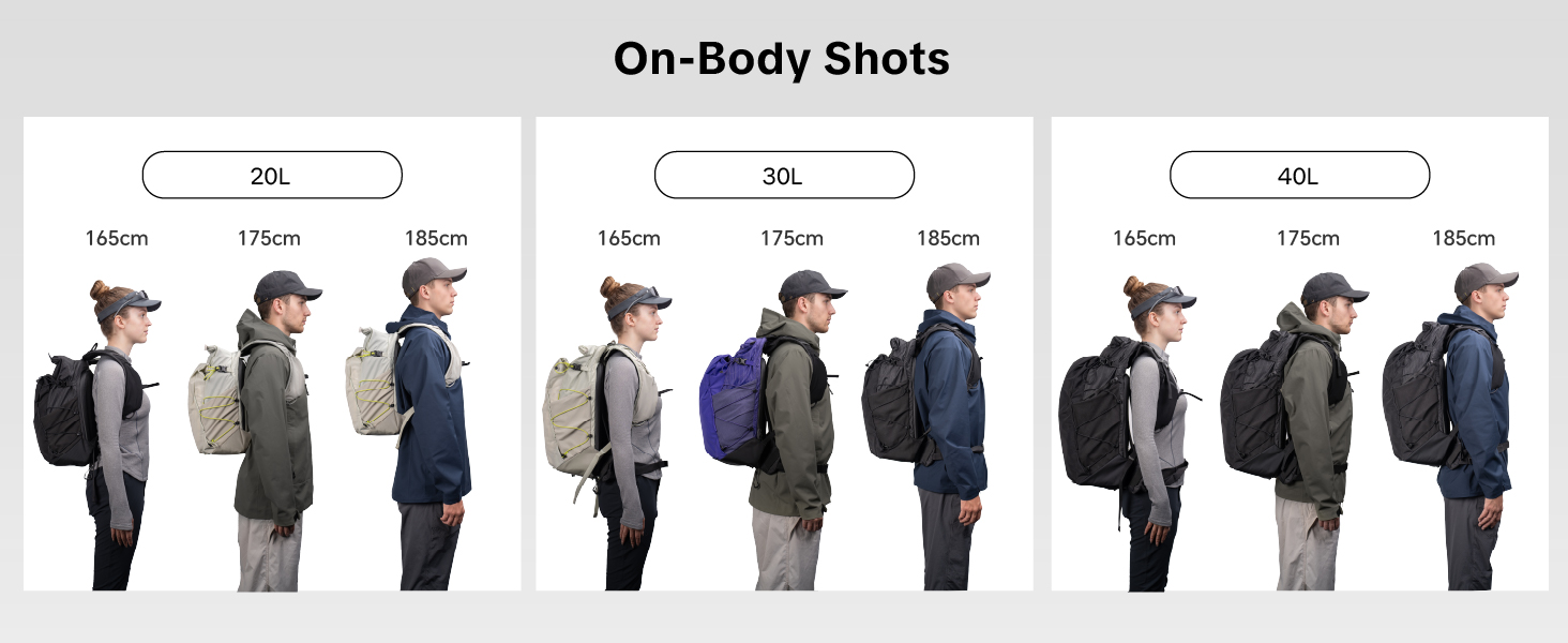 | Capacity | 20L/30L/40L | 30L/40L/50L | 25L/35L | 25L/35L | – | 16L/22L |