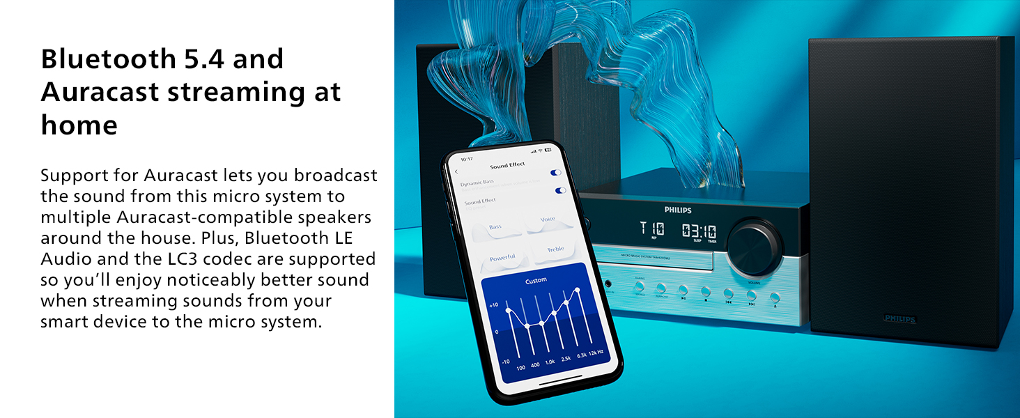 Philips TAM4205M2 Micro Hi-Fi System – 80W, Bass Reflex Speakers, CD, FM, USB, Audio-in, Bluetooth 5.4, Auracast, Digital Sound Control, Remote, Eco Packaging