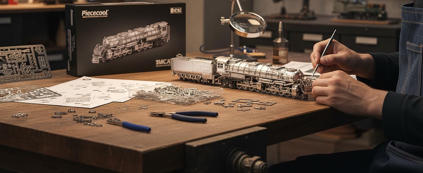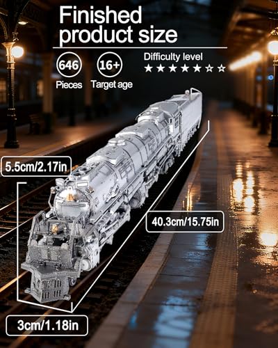 Piececool Metal 3D Puzzle Colossus Steam Locomotive, Model Kits for Adults to Build, 304 Stainless Steel, Assembly is required, No adhesive required, Difficulty level 5