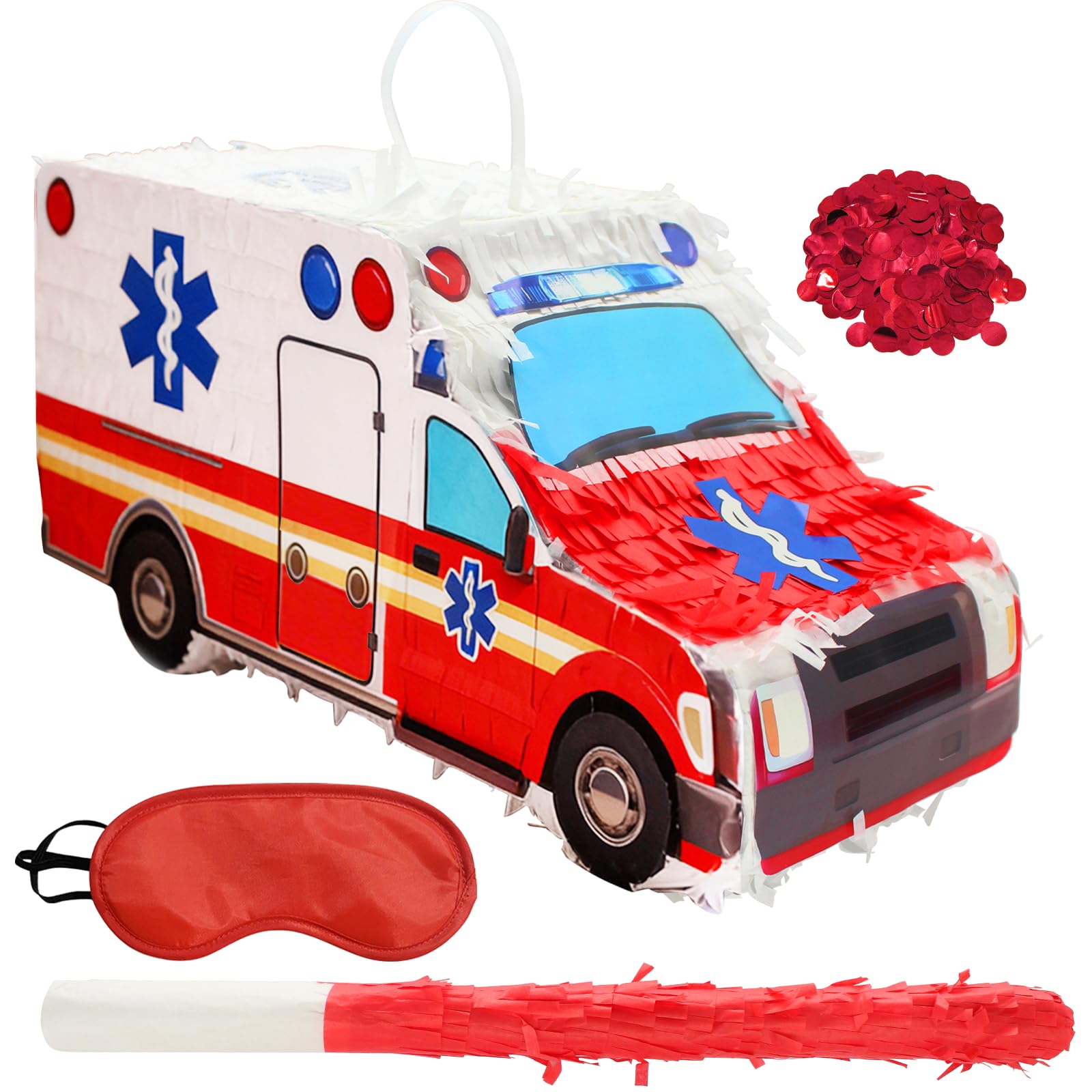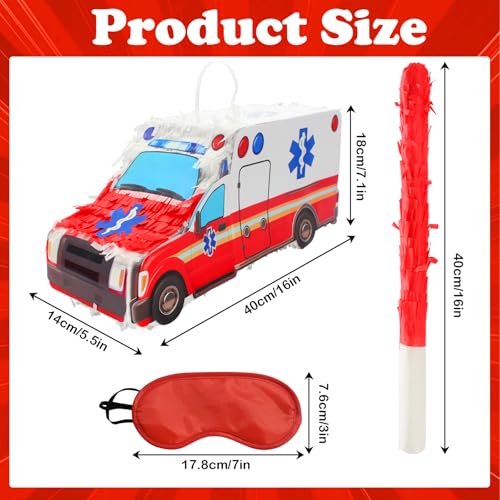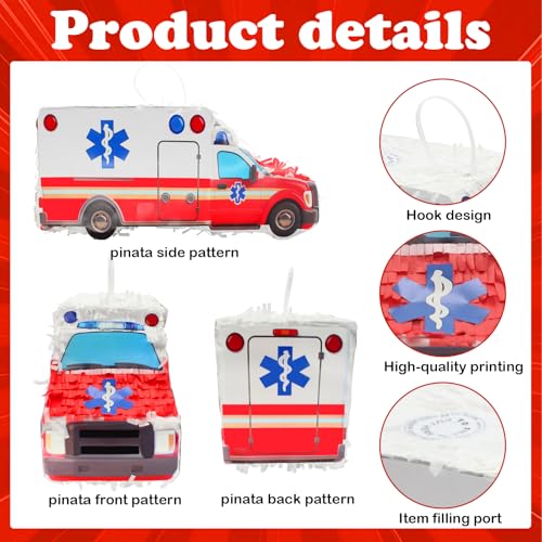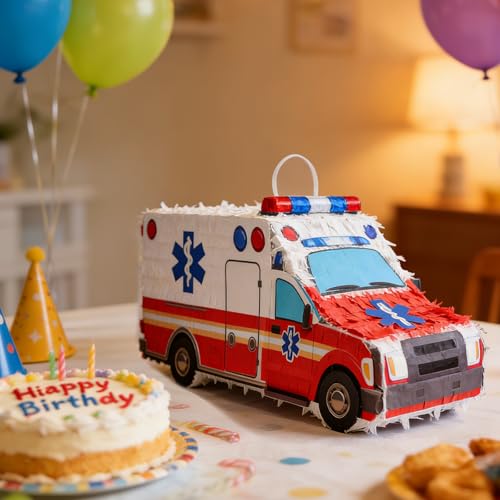 - 【Realistic Ambulance Design】The 3D ambulance-themed piñata measures precisely 39×14×16.5cm (approximately 15.35×5.51×6.5 inches). Its three-dimensional design highly replicates the appearance of an ambulance, with vibrant and eye-catching colors. Made of high-quality materials, its stable suspension ensures it won't easily fall off.