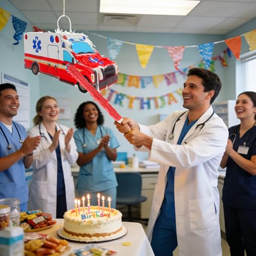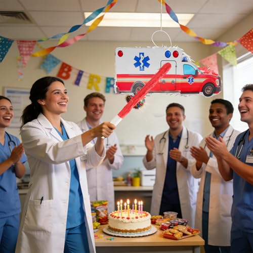 - 【Dual Function of Decoration】The ambulance-shaped piñata is both a stylish party decoration and an interactive party prop to ignite the atmosphere. When not in use, it can be hung at the party venue; the realistic ambulance shape quickly sets the theme. During the game, guests take turns hitting it, and when it breaks candy pour out, instantly igniting the party's joyful climax and easily setting the mood.