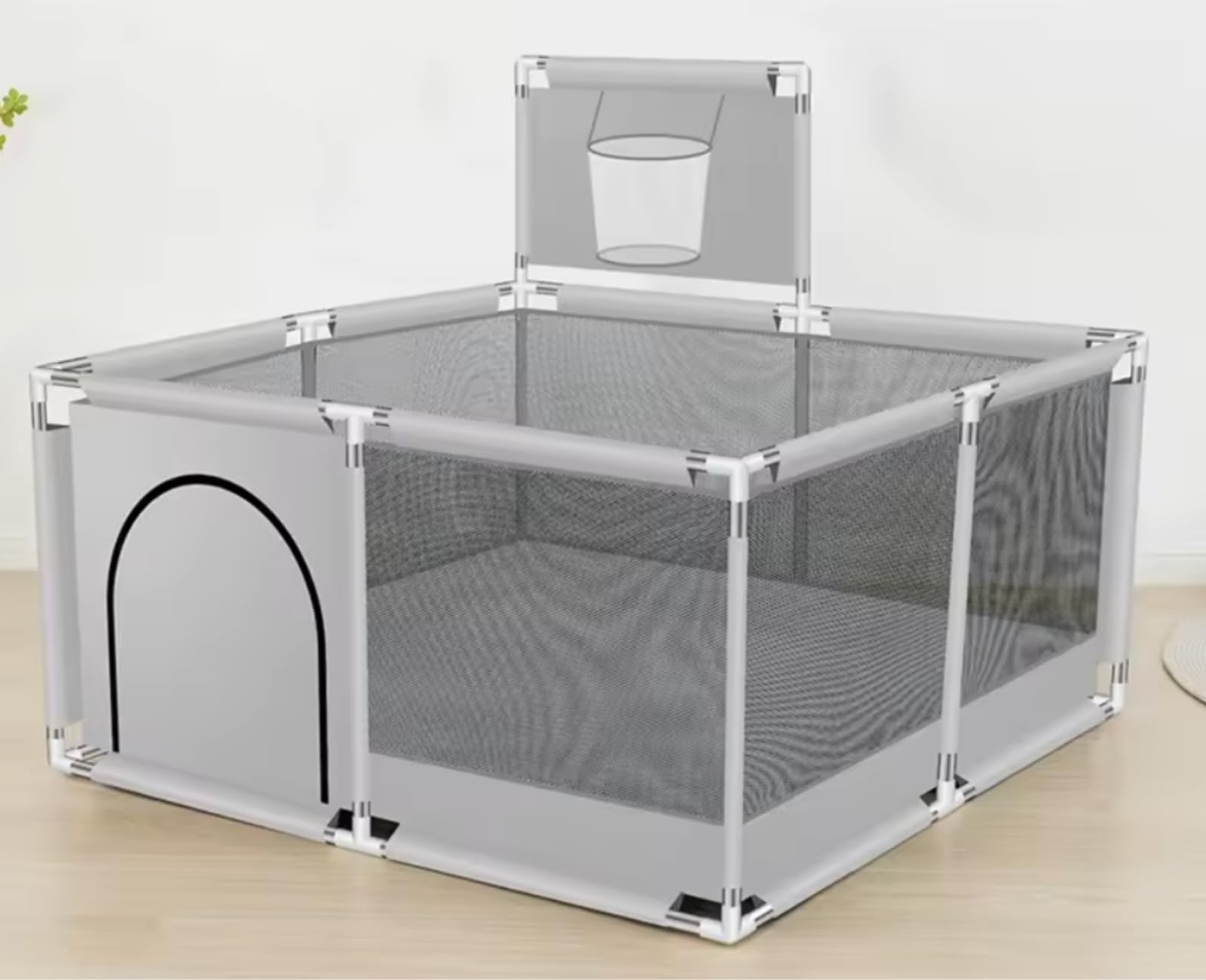 Manufactured From The Highest Quality Materials, Featuring Oxford Cloth And Stainless Steel Metal Poles. Included is: The Playpen and Basket Ball Hoop. This Kids Playpen Ensures Constant Entertainment For Your Child Whilst Not Compromising On Safety Features. The Baby Barrier Encourages Safe Play From The Translucent Mesh Material, Allowing Supervision With A Peace Of Mind And Non-Restrictive Flow Of Air! To Keep Accidents At a Minimum, The Baby Playpen Has Hidden Poles In It To Create An Anti-Collision Environment. Our Baby Fence Being Simple Yet Durable While Setting Up, Makes The Indoor Play Area Highly Portable Thanks To The Non Screw Frame! Our Baby Pens Include T-Joints And Corner Connectors To Create The Strongest Structure And Ensure Longevity, Preventing Wear And Tear Whilst Not Compromising On Quality. The Versatile Baby Pen Can Withstand Not Only Solo But Also Group Play Sessions, Thanks To The Secure Zipper Keeping a Secure And Enclosed Environment In A Large 50 X 50 Inch Area.