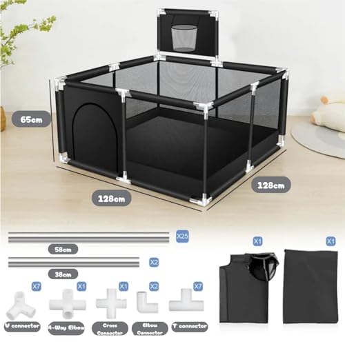 Playpen for Baby and Toddlers, Baby Play Pen with Visible Breathable Mesh, Easy Assembly Infant Fence Barrier, Indoor Playard, Nursery Furniture for Babies (Black) (128x128x65 cm)