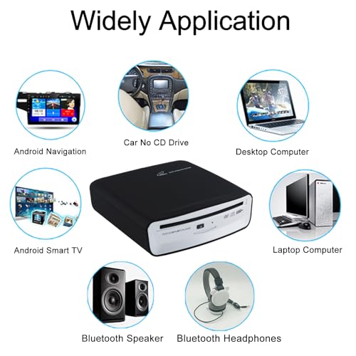 Not only compatible with Android car navigation, also compatible with Android smart TVs, Windows and Mac OS desktop PCs, laptops, PCs. High quality car CD player with table work performance and long service life. Product specification: Voltage/Current: DC 5V, Min 1A