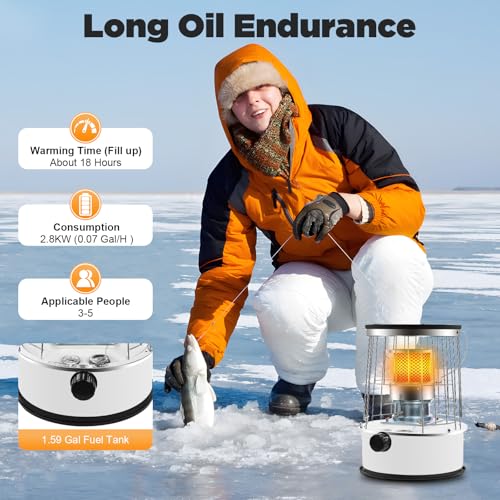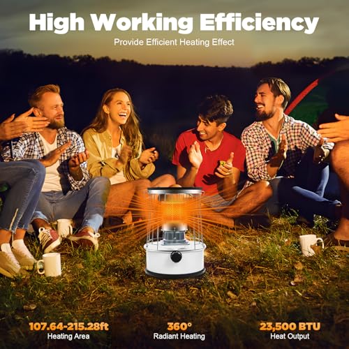 - Efficient Heating: The high-temperature resistant glass chimney ensures complete kerosene combustion. This heater rapidly releases heat with an output of 8000-10000 BTUs, covering an area of 107.64-215.28 square feet for an efficient warming experience.