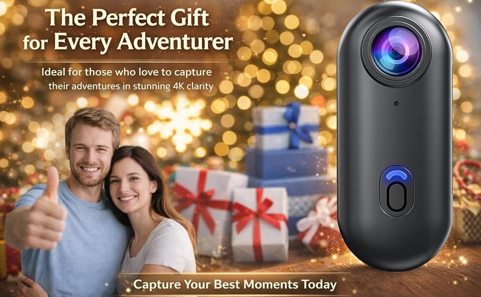 Ultra-Compact & Lightweight Design: Weighing only 1.25 oz (35.7g) and smaller than your thumb, this mini action camera fits effortlessly in your pocket or gear. Its small size and easy portability make it the perfect companion for spontaneous adventures without the bulk