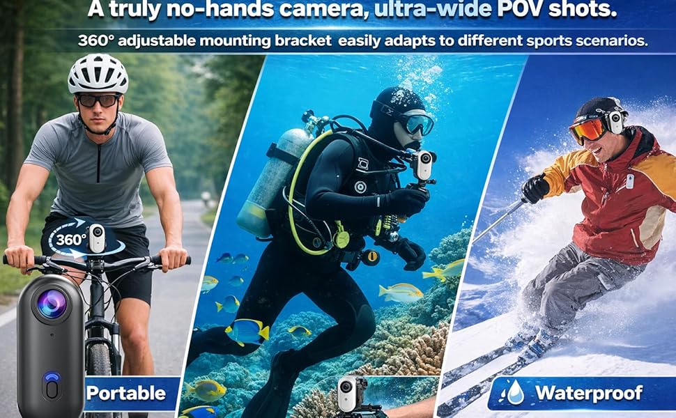 Versatile Mounting Options for Hands-Free Recording: Attach the camera easily with included magnetic clips, 360° rotating mounts, or helmet straps. Capture dynamic shots hands-free, whether you're biking, hiking, or exploring, ensuring stable and creative footage in any scenario