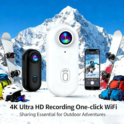 POV Camera Pro for Winter Sports, Ski & Snowboard Action Cam with Smooth Stabilization, 170° Wide Angle, Wearable Hands-Free Video Recorder for Snowboarding, Skiing, Ice Skating (White-4K,256G)