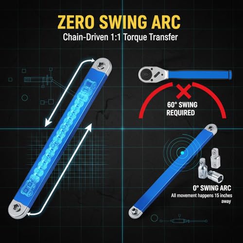 - RATED FOR REAL TORQUE (53 FT-LB MAX): Unlike cheap gear-driven alternatives that snap under pressure, our wrench features a reinforced Chain-Drive Mechanism housed in heavy-duty aluminum. Tested to withstand up to 53 ft-lb (72 Nm) of torque and impact-ready, ensuring you can break stubborn nuts loose without damaging the tool.