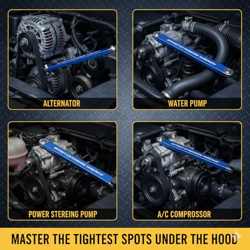 - UNLOCK THE IMPOSSIBLE BOLTS (0° SWING ARC): Engineered for the tightest engine compartments where traditional ratchets fail. Our 15-inch extension allows you to reach deep-set fasteners with zero degree swing arc, transferring your wrench's movement from an open area to the confined bolt. Perfect for water pumps, power steering pumps, and alternators.