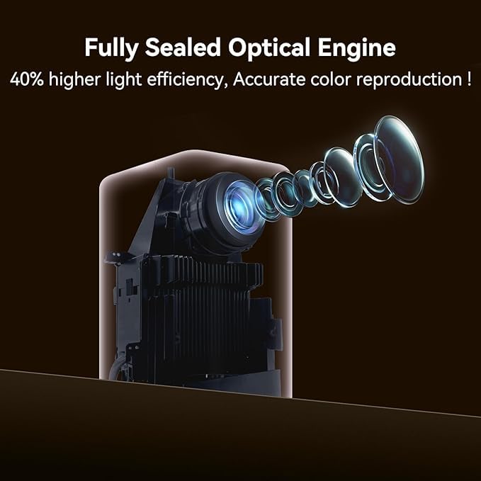 - 【Sealed Optical Engine Accurate Color Reproduction & Enduring Brilliance】Featuring a fully sealed optical engine with 40% higher light efficiency and an ultra-clear lens, the delivers brighter, sharper visuals with true-to-life colors for a superior viewing experience.