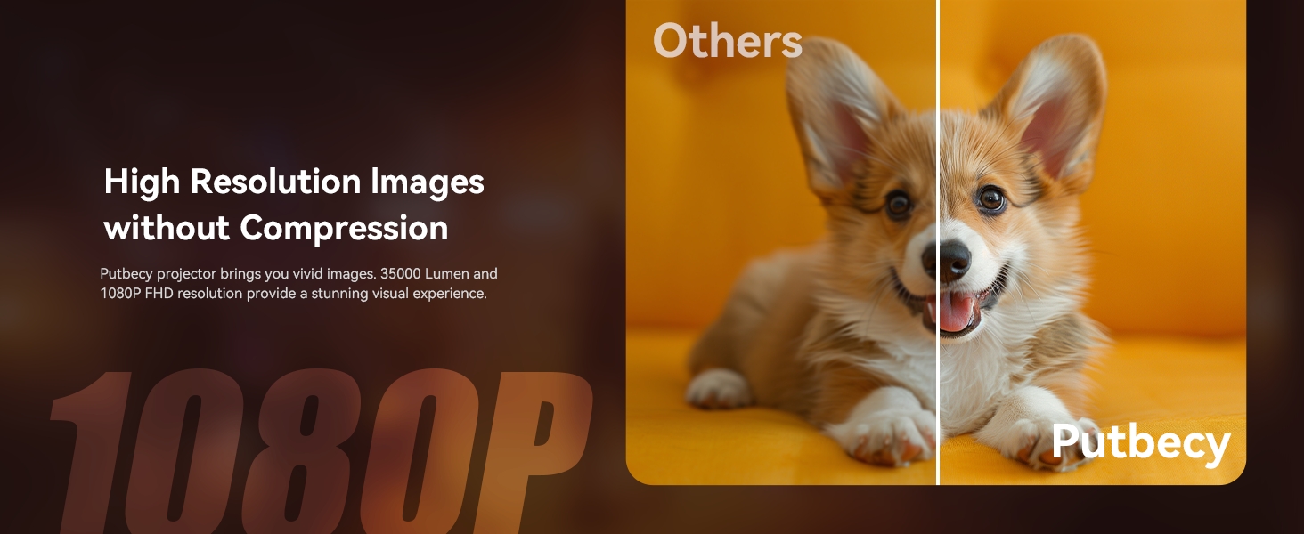 - 【Native 1080P&4K Support, 35000 Lumen Brightness】 Putbecy 4K projector has a native 1920*1080 resolution, supports up to 4K, 35000 Lumen brightness and 15000:1 high dynamic contrast, Putbecy projector can display sharp and detailed HD images on a 140” giant projection screen. 40% Optical Off axis, Allowing for more freedom in placement, Putbecy video projector provides brighter, vivid and colorful images and videos!