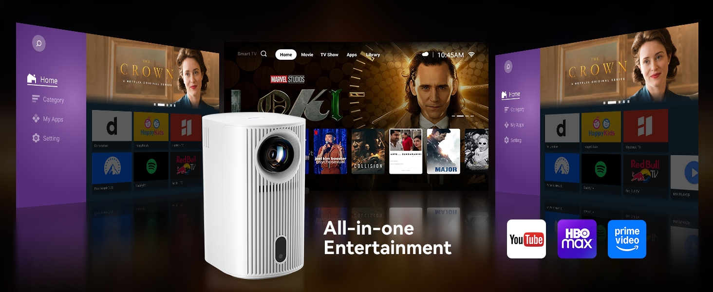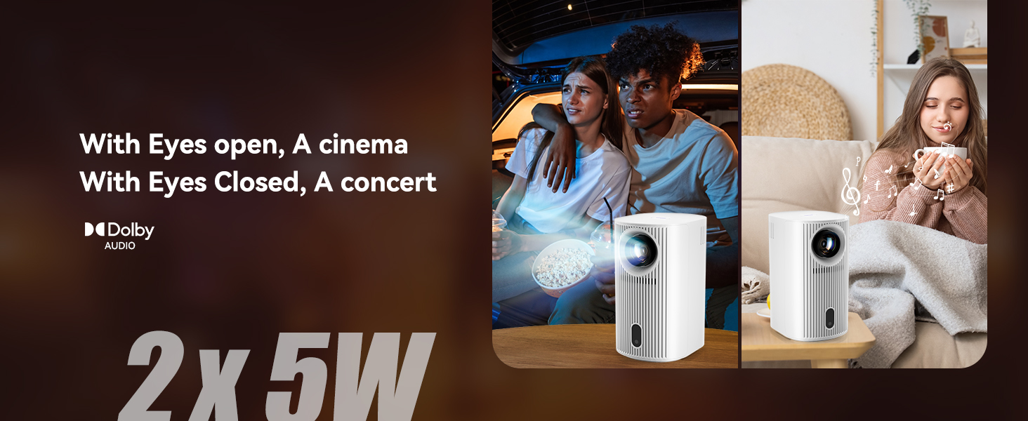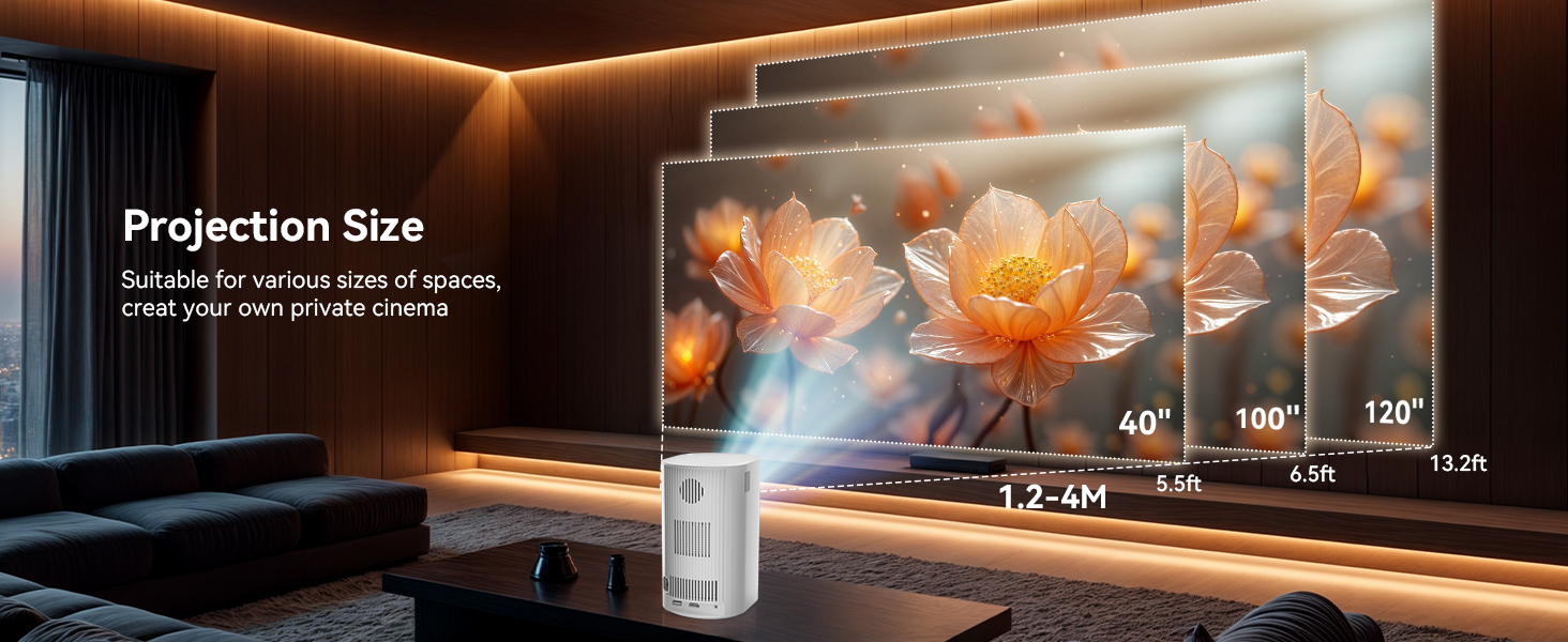 - 【2-Turbine Cooling System&Quad Core CPU】2-Turbine Cooling System, no need to worry about the problem of projector heating; With the Quad Core CPU, it has powerful video processing capacity, faster and smoother operation, clearer and more exquisite image quality performance, allowing you to easily enjoy a smart audio-visual feast like a cinema.