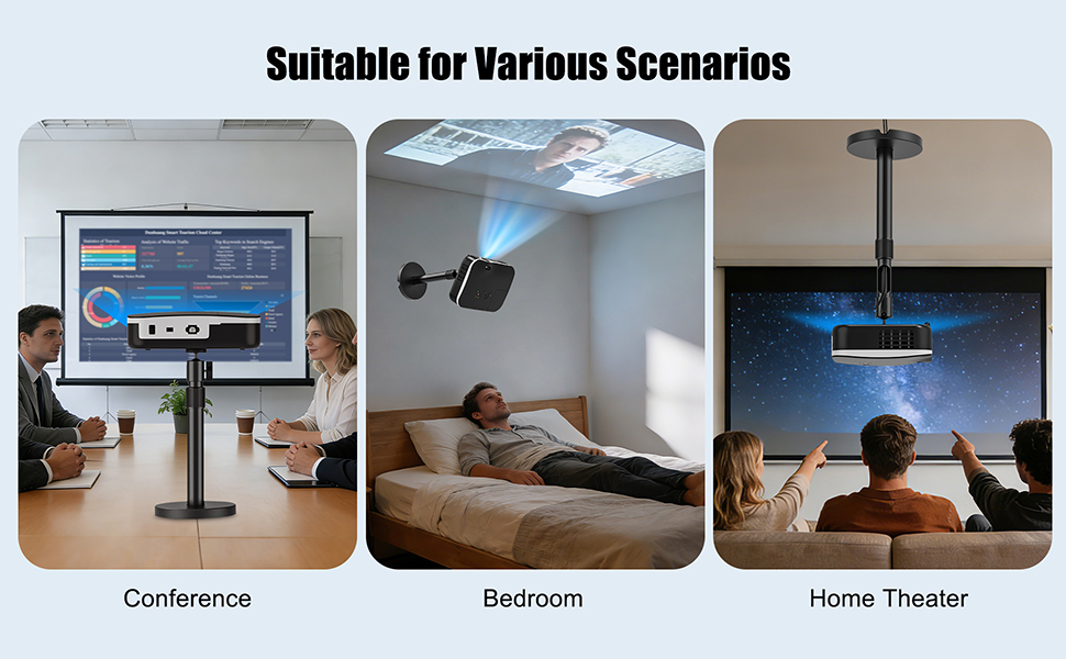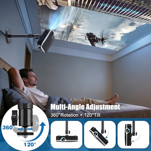- Multi-Angle Adjustable – The projector bracket is equipped with a high-quality ball head that can rotate 360 degrees and tilt 90 degrees, so you can adjust any angle you need, providing reliable and stable projection from any angle, and then enjoy your leisure time to your heart's content.
