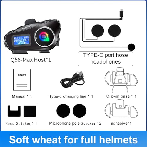 Q58 Max Motorcycle Intercom Headset, for 2 Riders Talking At the Same Time Within 500m,Soft Mic