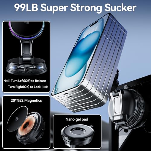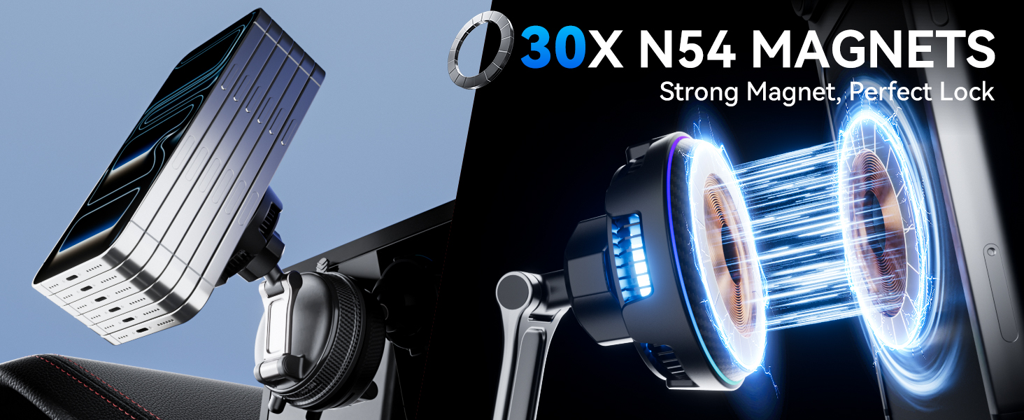 - Strong magnetic attachment, one-button hold: A powerful N54 magnet firmly secures the phone, maintaining stability even on bumpy surfaces; simply toggle the switch to lock it in place. (For best performance, it is recommended to use with an official MagSafe case or without the phone.)