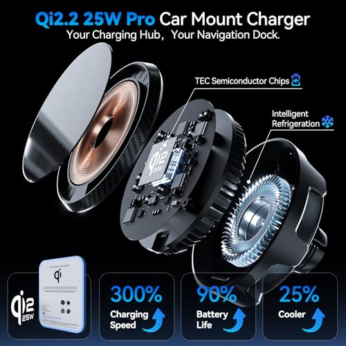 Qi2.2 25W Certified for MagSafe Car Mount Charger, Wireless