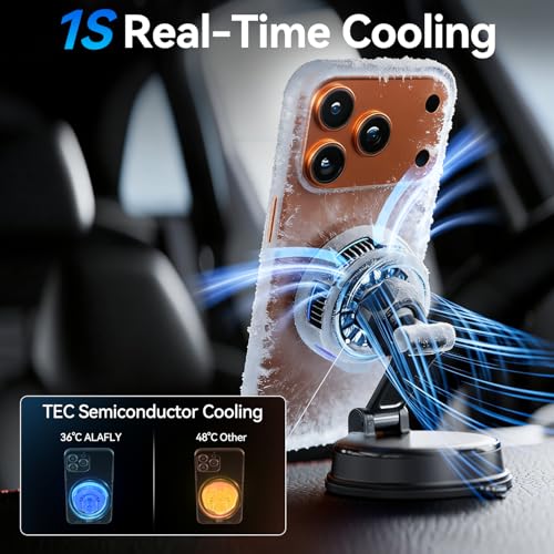 - Aerospace-grade active cooling technology: The magnetic fast-charging car charging mount is equipped with TEC cooling technology and AI.) Temperature regulation technology, combined with a cooling fan, helps protect the battery and reduce long-term wear and tear, ensuring ultra-fast charging speeds and greater safety and reliability.