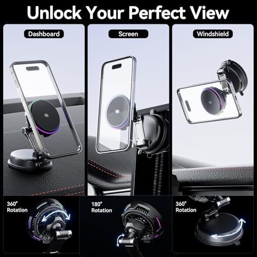 Qi2.2 25W Certified for MagSafe Car Mount Charger, Wireless Car Charger with TEC & Cooling Fan, 360°Rotation Strong Magnetic Phone Holder for Car with 45W Adapter for iPhone 17 Pro Max 16 15