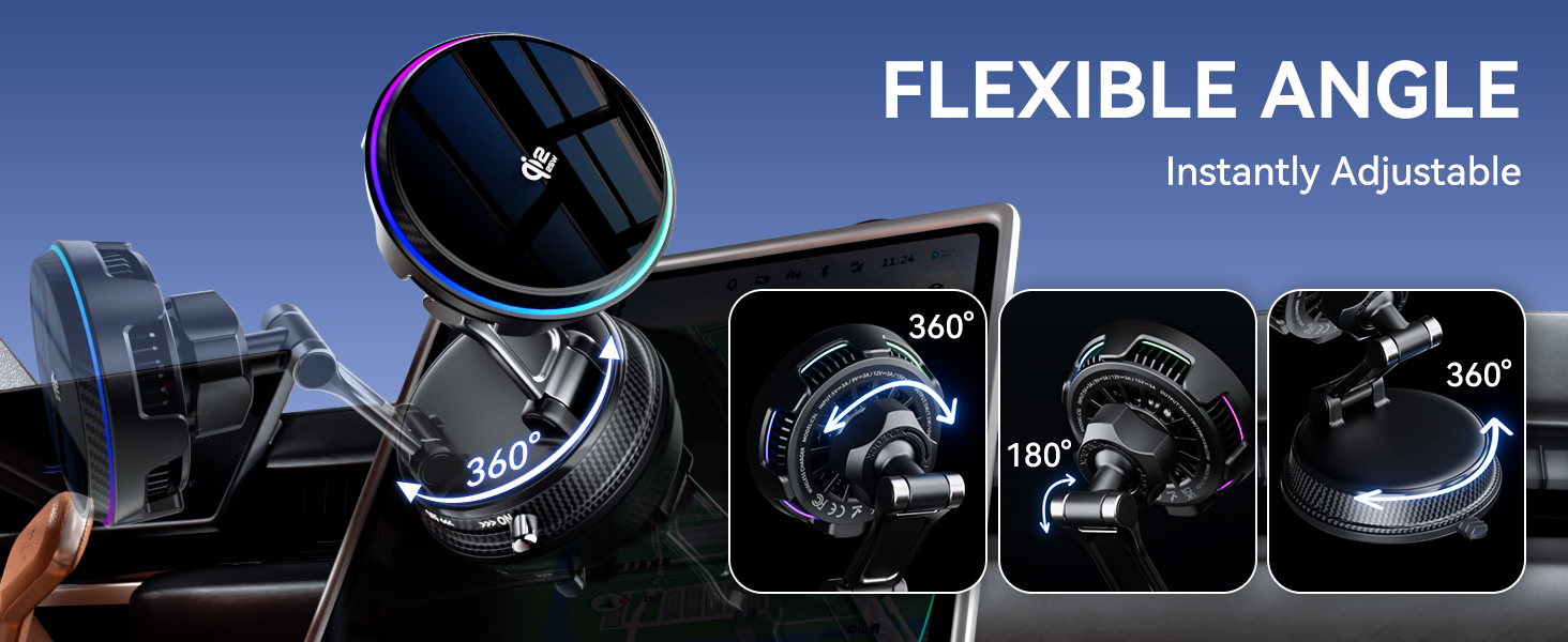 - Advanced Durable Manufacturing: The fast-charging car mount uses ABS+PC metallic paint for a premium sheen and delicate touch. The aluminum alloy frame ensures extremely stable support while significantly reducing weight, achieving a perfect balance between strength and aesthetics. The stainless steel quality ensures stable and reliable use regardless of moisture and seasonal changes.