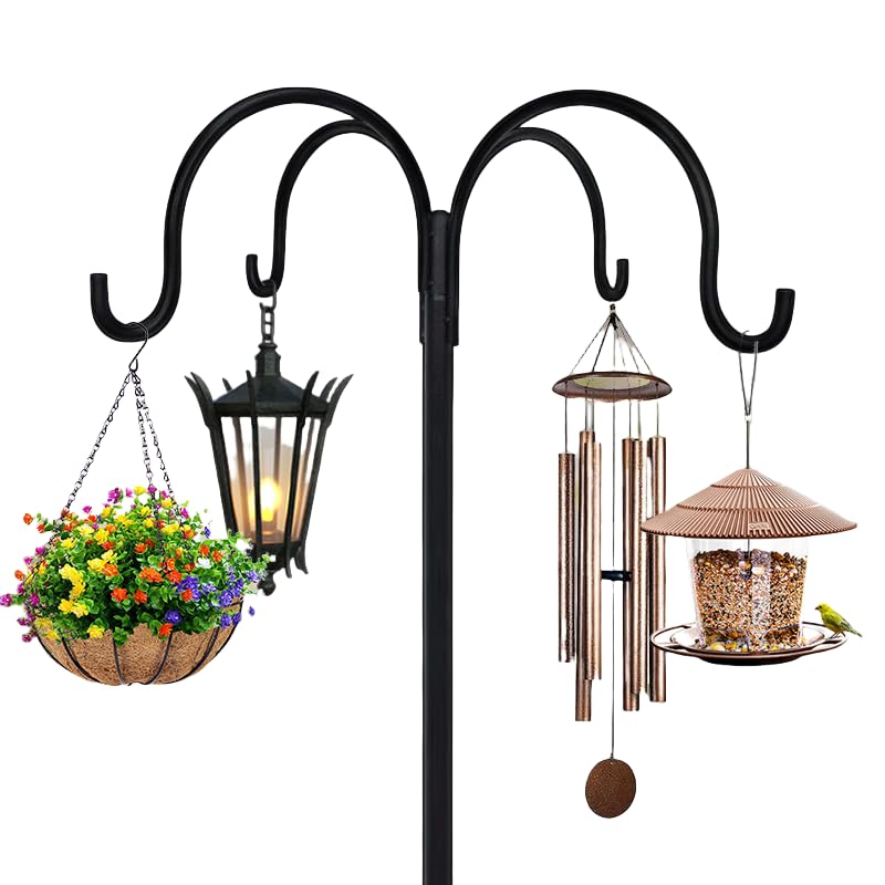 - Unique Multi-Hook Design — Our heavy-duty hanging station features a uniquely designed multi-arm that allows you to hang and display items such as flower baskets, bird feeders, solar lanterns, wind chimes, and more. It blends functionality with aesthetic appeal, enhancing the beauty of your garden, patio, or any outdoor setting.