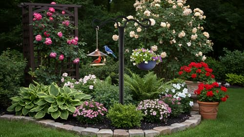 - VERSATILE DESIGN: Features multiple hanging hooks perfect for bird feeders, garden lights, flower baskets, wind chimes and decorative items