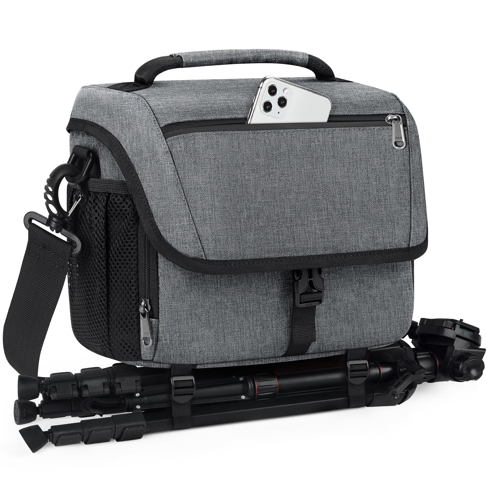 RAINSMORE Camera Bag Professional DSLR/SLR/Mirrorless Camera Case Waterproof Camera Sling Bag Small with Rain Cover&Tripod Holder Grey