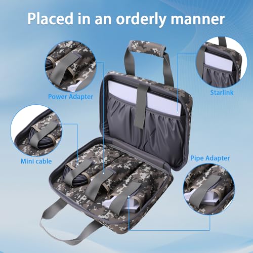 DURABLE & WEATHER RESISTANT – Made from rain proof camouflage nylon with padded compartments and pockets. Reliably protects your Starlink Mini and accessories from scratches, bumps and harsh weather conditions