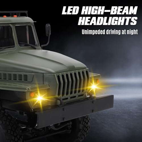 - 6×6 Off Road Vehicle: Designed with a sturdy six wheel drive chassis, this RC car reaches speeds of 5 km/h, ideal for climbing and navigating challenging surfaces.