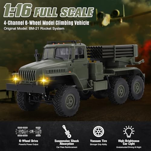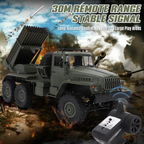 RC Truck 1 : 16 Scale 4 Channel 6×6 Remote Control Crawler Car with Dual Battery 5KM H Speed 30M Range Original Model BM-21 Rocket System