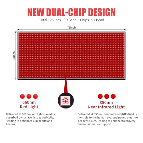 Red Light Therapy Mat,Red Light Therapy for Body Pain Relief 1280 PCS LEDs 71'' x 31'' Red Light Therapy Pad with Red Light and Infrared LED Beads Large Mat for Full Body Skin Health